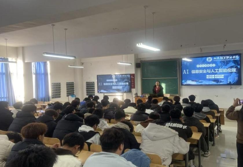 为适应数字经济时代对高素质技术技能人才的新要求,11月28日,机电工程系邀请信息素养教研室教师边昕烨老师,在T8406举办了“学生数字素养培训”和“信息安全与人工智能伦理”讲座,旨在全面提升学生的数字化能力和信息安全意识,为培养新时代复合型人才莫定坚实基础。